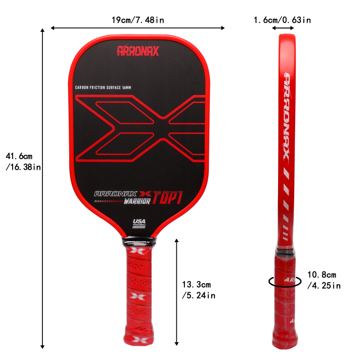 ARRONAX Performance Top 1 Pickleball Paddle - Carbon Fiber, 16MM Thickness, 144MM Handle - Balanced Control